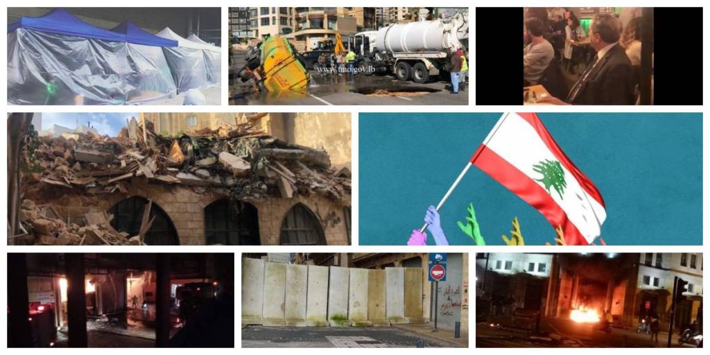 The Gemmayze building was filmed going up in flames, presumably by protestors in the area.