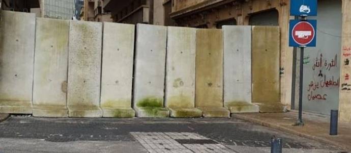 All entrances to Nejmeh Square in Beirut’s downtown have been blocked off with barbed wire and metal barricades.