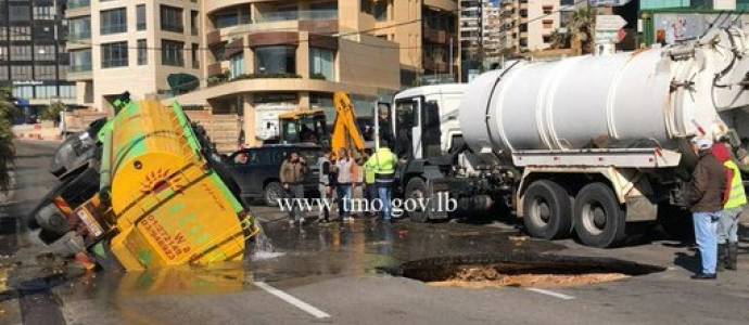 17. Road Subsides In Raouche, Swallows Water Truck January 24