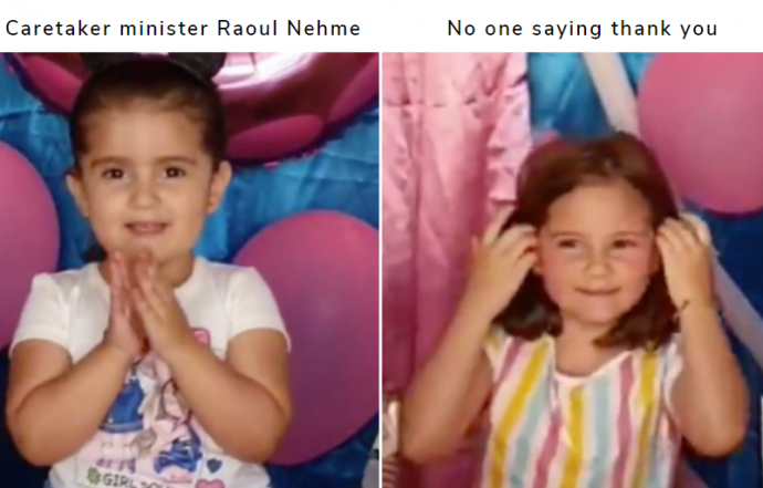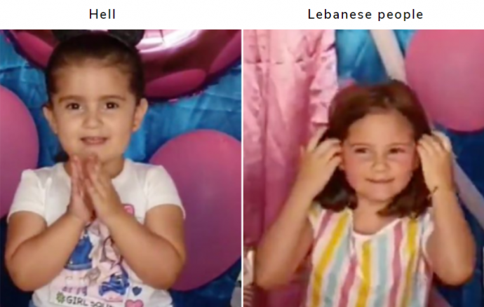 The evil smirk on that little girl’s face has made the video go viral, and both young ones are a new meme reference which just so HAPPENS to apply to Lebanon.