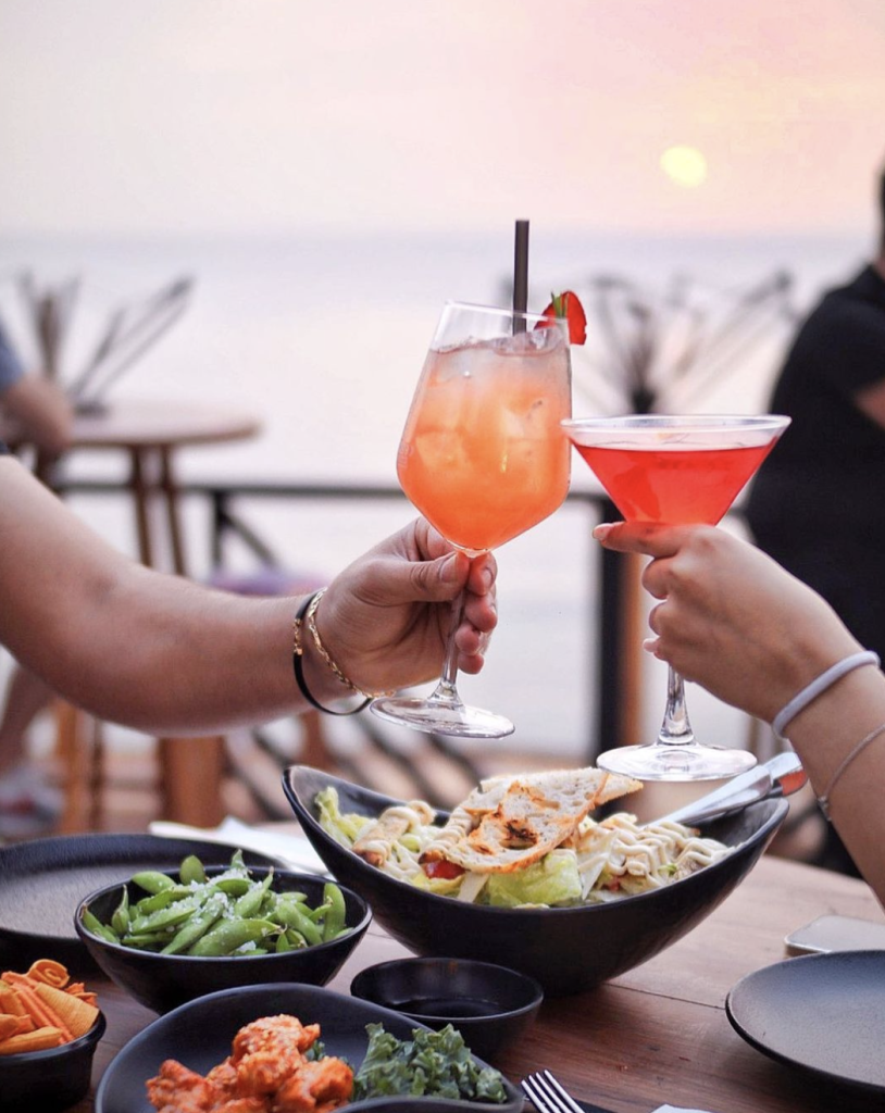 Sipping on strawberry mojitos, nibbling on nachos, and watching the sunset are must-have experiences at Amara. Get comfortable because you’ll be sticking around till late.