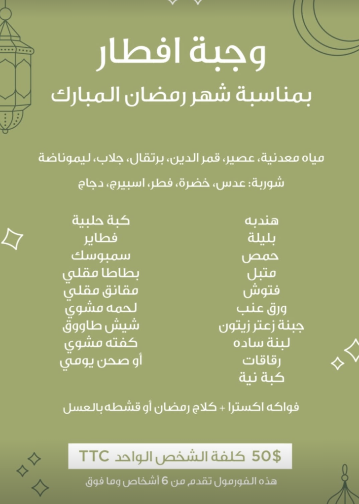 Iftar set menu in Tyre: $35 per person