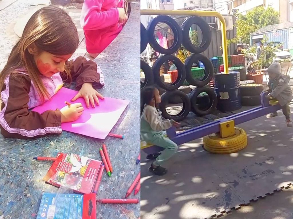 Many of these kids have experienced trauma, loss, and uncertainty, but for a few hours at a time, they can forget the war, play freely, and simply be children again at the EcoHub, home to Hamra’s eco-friendly playground, established by Ahla Fawda.