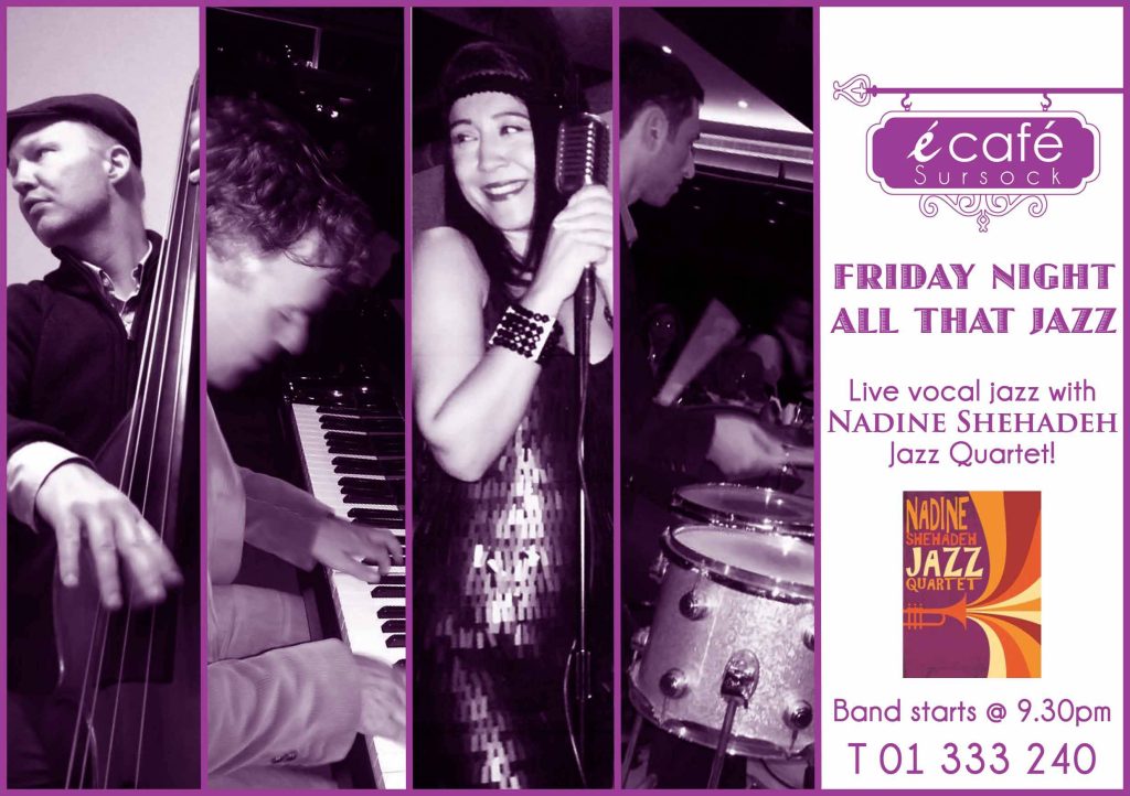 Join eCafe every Friday for a live vocal jazz session with the Nadine Shehadeh Jazz Quartet. Listen to their repertoire and enjoy the atmosphere of Ella Fitzgerald, Sarah Vaughan, Dinah Washington and Nina Simone.