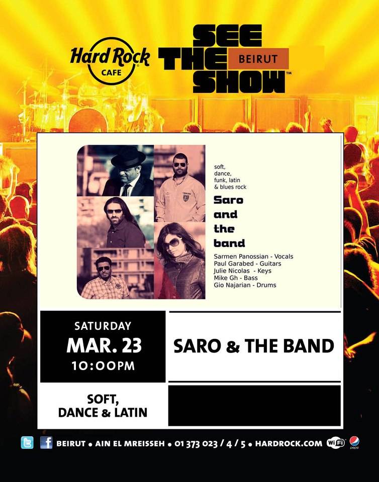 Join the Hard Rock Cafe as it hosts a live performance by Saro & The Band. The band will be playing a mixture of Dance and Latin songs, to give you an evening of music that will surely make you move more than once. Don’t miss out on this awesome performance.