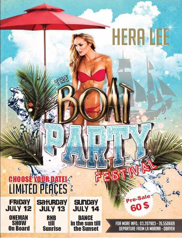 Head on over to La Marina Dbayeh and hop aboard the Hera Lee for three separate parties happening on board for one weekend. Each day, a different kind of party will take place on board.